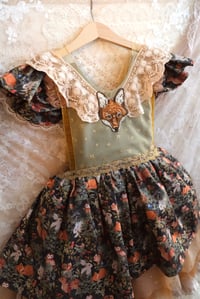 Made with a mixture of soft tulles, lace, and woodland cotton fabric. Adorned with a fox applique and lace collar.